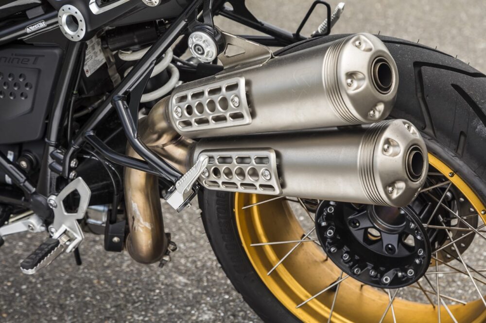 GSらしくアップマウントされたスクランブラー・エキゾースト。ルックスとサウンドを両立させているのも◎