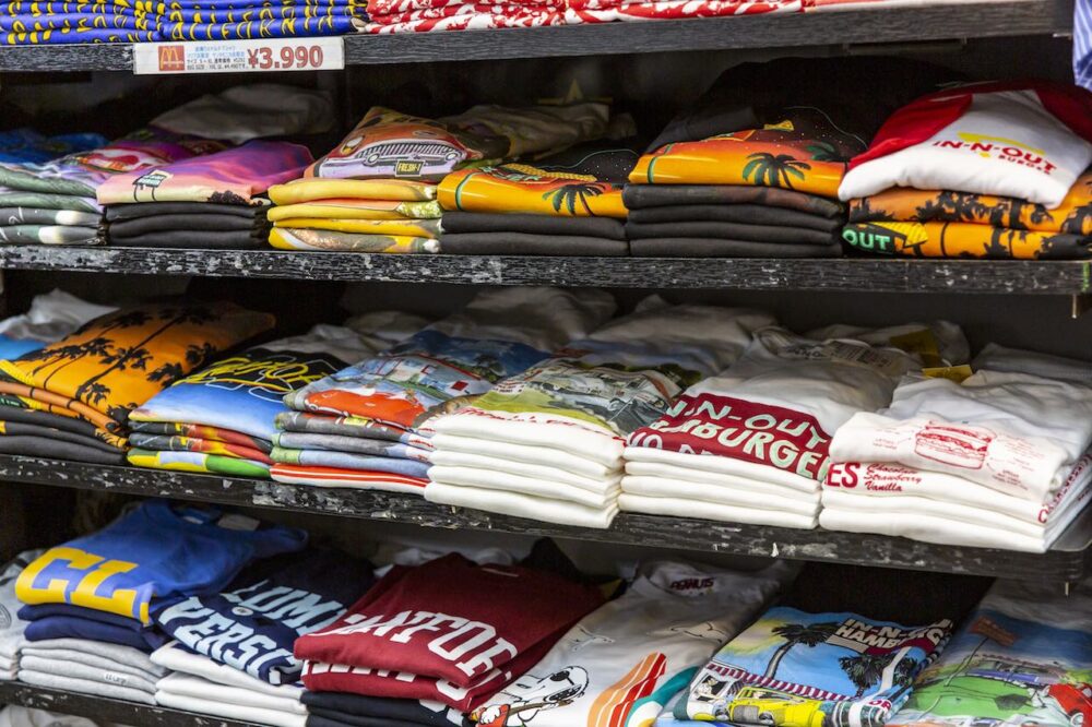 マクドナルド のマリブ店限定のものから、アメリカでも人気の高いインアンドアウトバーガーまでラインナップ。日本では見掛けることのないコアなアイテムがかなりお買い得なプライスで並ぶ。現行のインポートブランドだけでなく、古着やアウトレットもあり、お宝が眠っているので、探してみて!