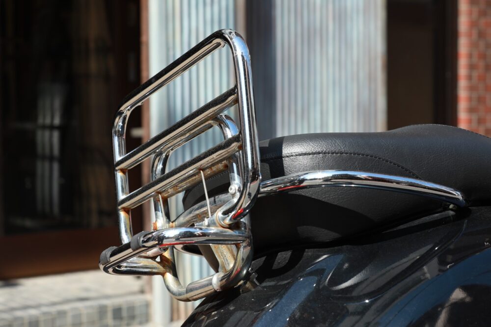 「なんといってもヴェロセット特有のユニークで美しい造形のエンジン、そしてTTレースのウイニングイヤーが入れられた黒×金のタンクロゴに惹かれました」。最近までボロボロのまま乗っていたサドルが、知人から譲り受けた綺麗なサドルを装着しご満悦。