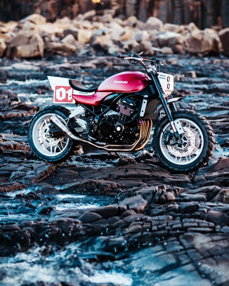 KAWASAKIオーストラリアとデウス・シドニーのコラボで製作したKAWASAKI Z900RS。映画『Stone』のオマージュとして、劇中のアウトローチームのバイクをイメージ。Z900RSの純正を活かしながら、フロントカウルやシートカウルで独特のカスタム感が与えられている。