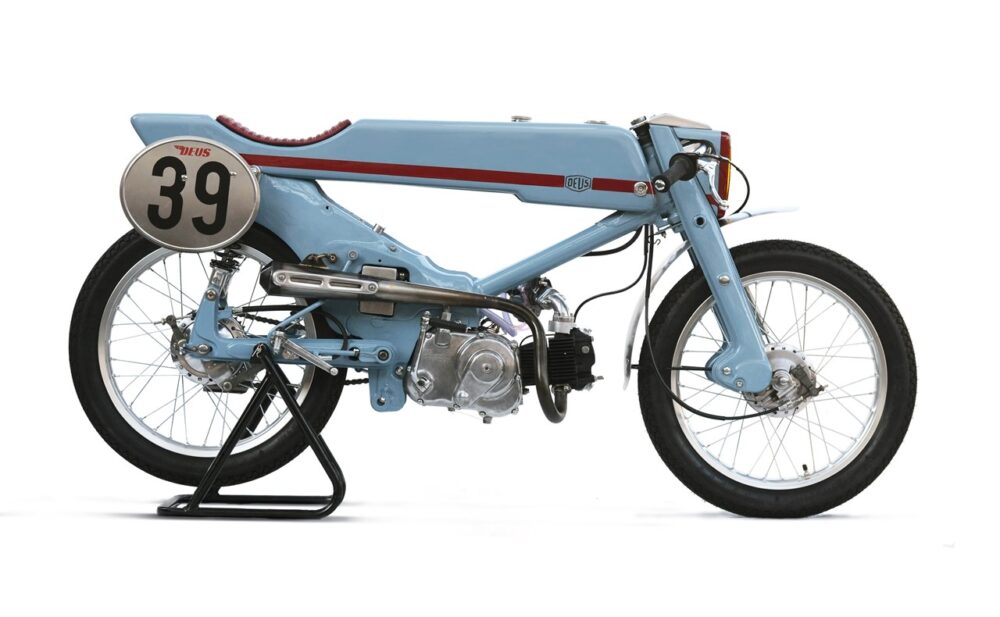 Deus原宿のモーターサイクルオペレーションのディレクター、マシュー・ロバーツが’61年式HONDAスーパーカブをベースに製作。カブの概念を覆す斬新なシルエットで、見た目だけでなく実際にサーキットのレースに参戦する本格的なレースマシンである。