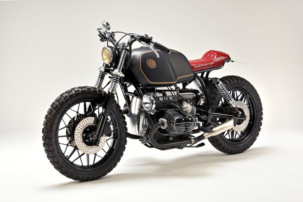 ‘82年式BMW R100Rをベースに方向性の異なる2種類の外装を用意した斬新なカスタム。タンクやマフラー、シートカウルがボルトオンで変更でき、気分で洋服を選ぶように外装を着せ替えられるというユニークな1台。