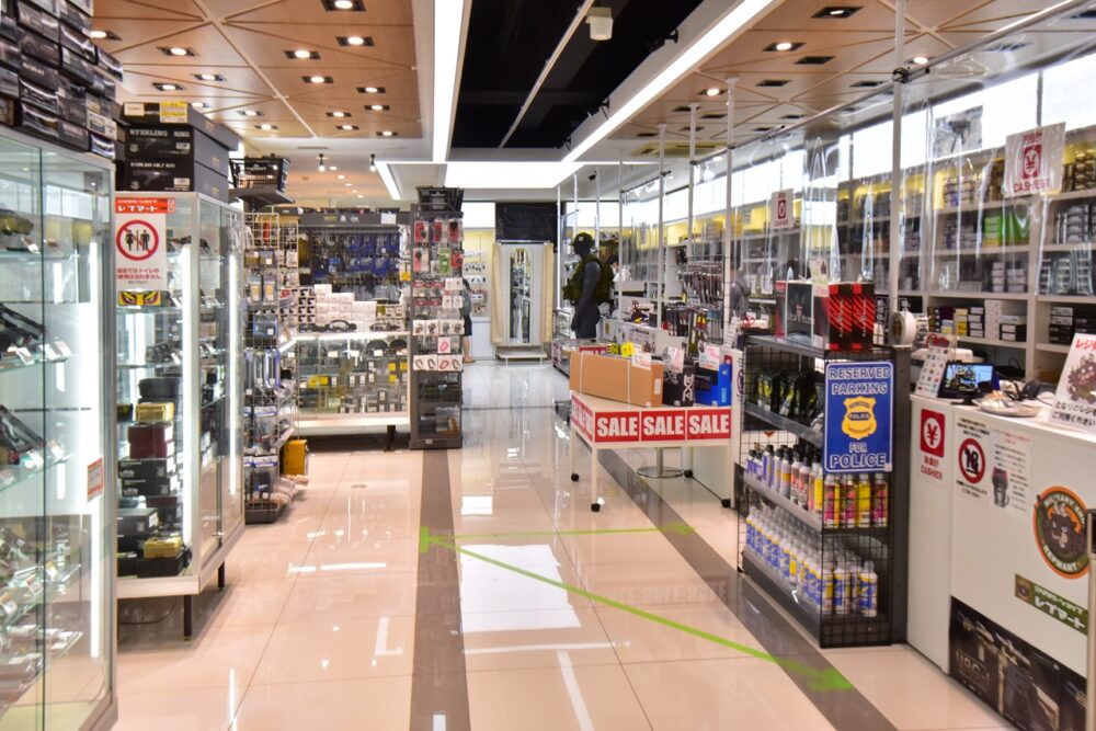 お店に入って驚いたのが、そのフロアの大きさと通路の広さ、そして清潔感。ミリタリーショップというと狭い通路にギュウギュウ詰めの商品といったイメージだが、東京アキバ店なら彼女や奥さんとの買い物や、女の子ひとりでも安心して遊びにいける雰囲気。