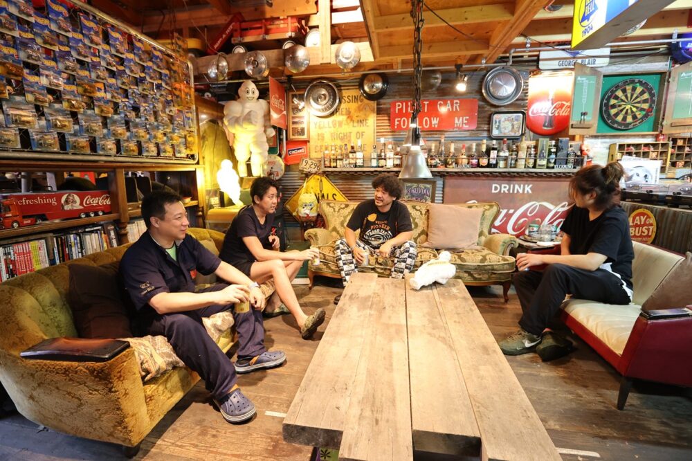 こうして収集したヴィンテージ雑貨をガレージにちりばめ、居心地のよい空間を演出。趣味の仲間が集まる秘密基地のような存在になっている。