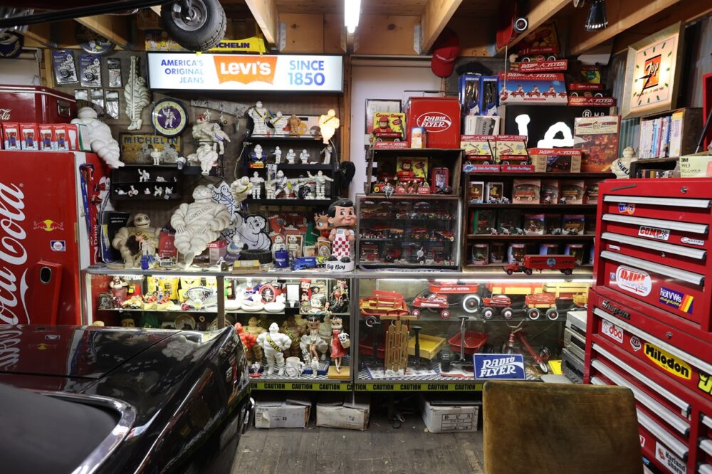 「軽い気持ちで子供にラジオフライヤーを購入したら、すっかりハマってしまいました(笑)」自宅がラジオフライヤーであふれるようになり、全部を収めるガレージを建てることに決定。しかし、空きスペースができたことから、収集欲がさらに増してしまったそう。そこでフランスのタイヤメーカー、ミシュランのマスコット「ビバンダム(ビブ)」のグッズを集めるようになった。