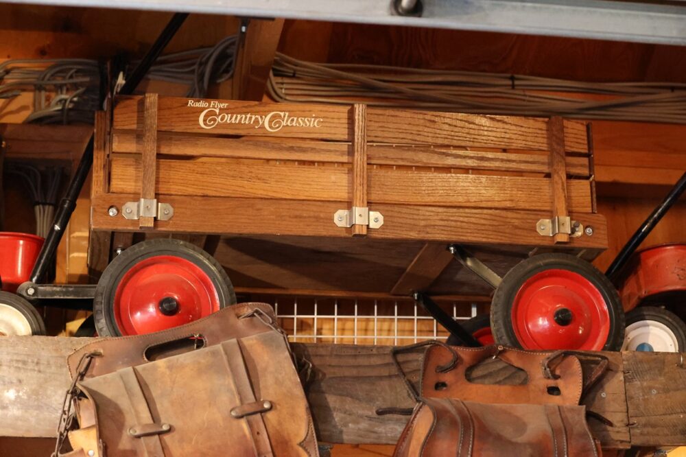 屋根の梁を生かして収納スペースを確保。ラジオフライヤーはもちろん、細かいパーツ、タイヤなどを上手に収納している。