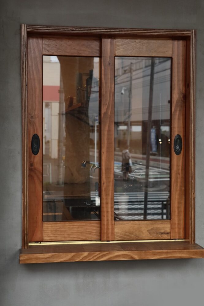 こちらはコーヒーを受け渡すカウンター。外装にプライウッドとモルタルを組み合わせるアイデアは、HITSCOの中嶋さんによるものだ。