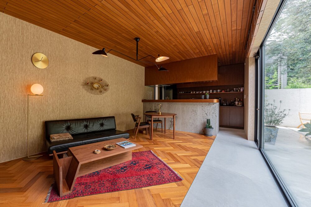 ミッドセンチュリーモダンなリビングにも注目。
