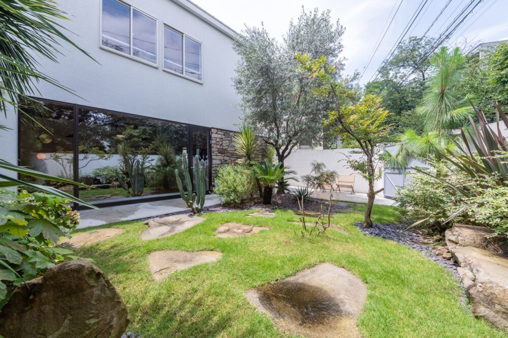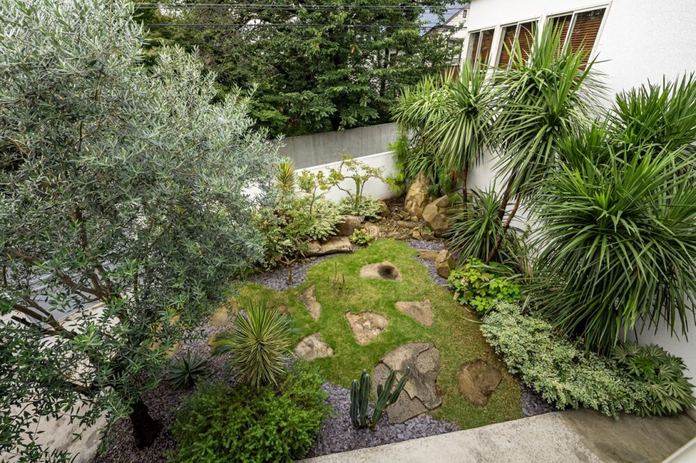 井の頭公園に程近い地に位置するサトウさんのご自宅。一歩敷地内に足を踏み入れれば、全てが計算し尽くされた美しい配置の植栽に思わず目を奪われてしまう。