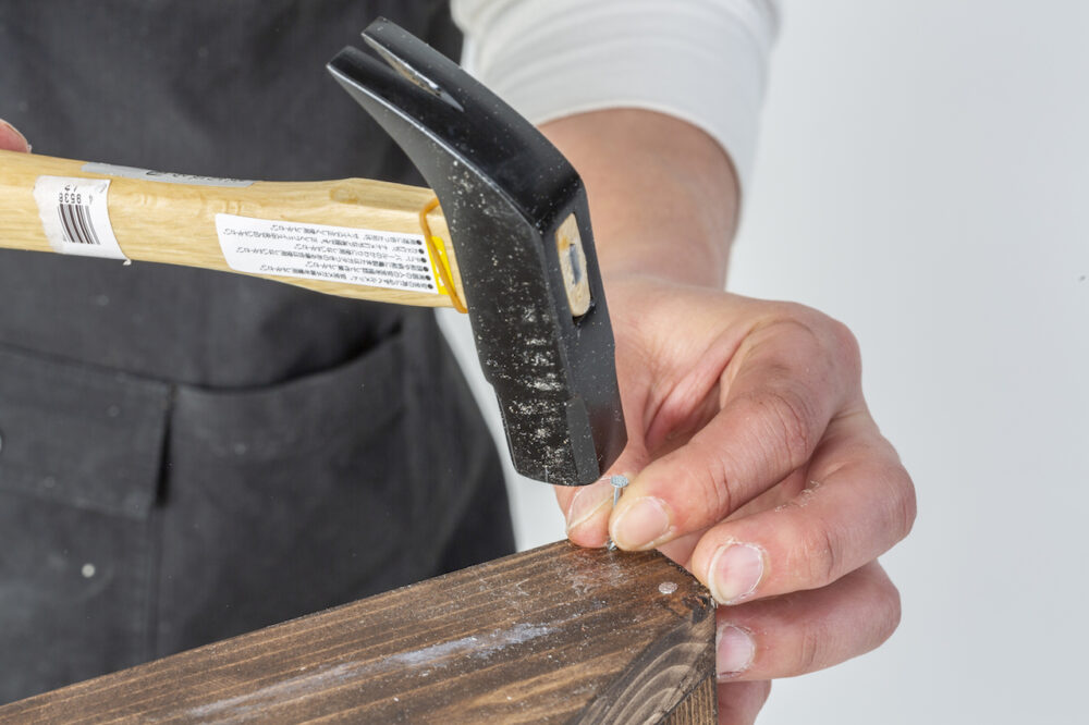 釘で木材を固定するときに使用。使用する釘が小さい場合は、小振りなものの方が使いやすい。