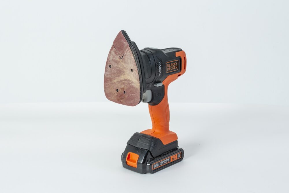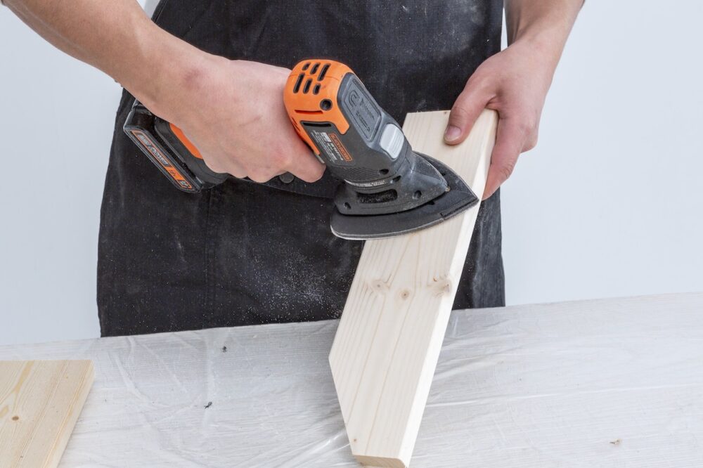 木材をサンディングするためのサンダー。サンディングすることで、ワックスが木材に入りやすくなる。