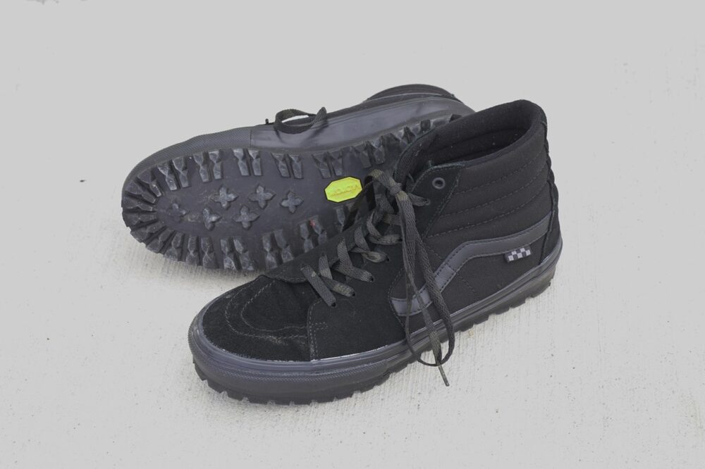 実際に作戦時に使用する隊員がいるほど、近年一部の米国特殊部隊員の間で異様な人気を誇るバンズのシューズ。コボさんはビブラムソールを後付けして運用している。