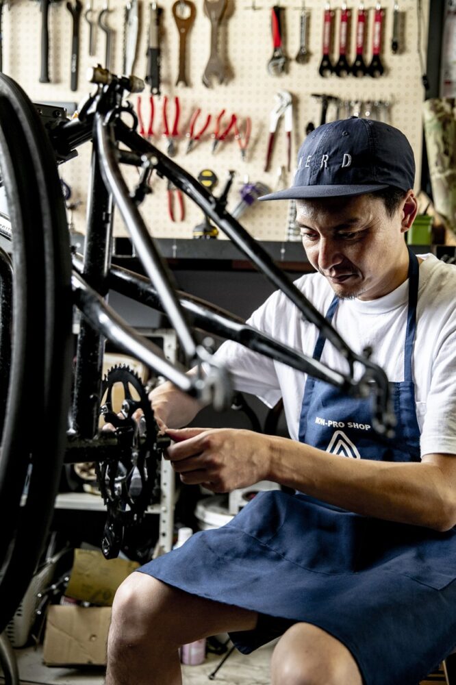 元々ヴィンテージバイクに乗り続けていたが、源流フィッシングのポイントに辿り着くためにマウンテンバイクに乗るようになり、自分で整備やカスタムを手がけることや、ハードに体を動かす自転車旅の魅力を見つけたのだという。