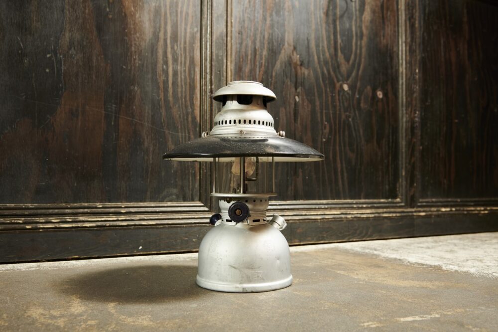 名作ミリタリーランタンのひとつに挙げられるスイス軍のアイテム。ドイツの名門であるペトロマックスが生産しており、そのデザインはスイス軍のみであるのもポイントが高い。「なかなか市場に出てくるアイテムではないけど、人気の高いランタンです。燃料が灯油で光量がかなりあるため、汎用性が高いのも魅力です。燃料タンクも大きく、2泊3日程度なら、十分保ってくれます」