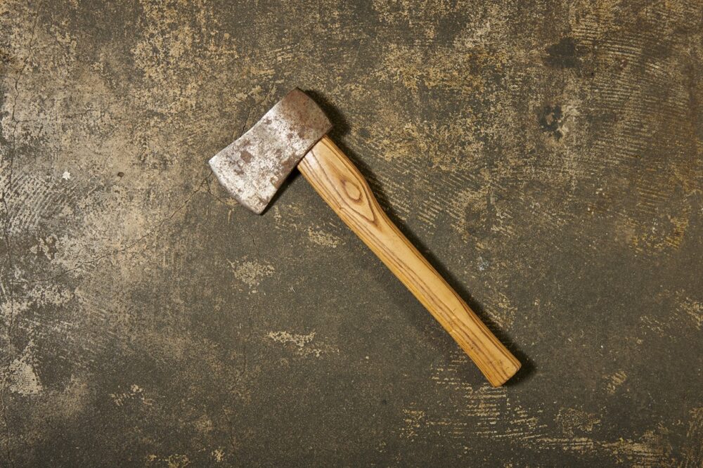 野営の時に薪を作ったり、寝床を確保する際に枝を伐採するアックスは、スイスのミリタリーもの。「木を切るだけでなく、ペグ打ちをする時にも使っているんです」