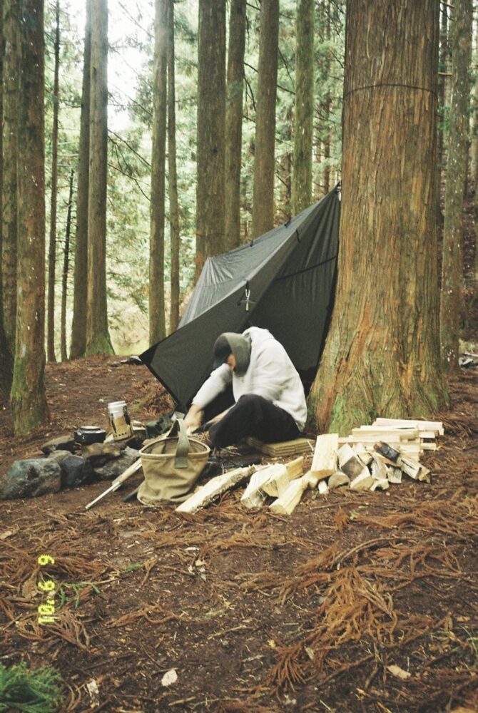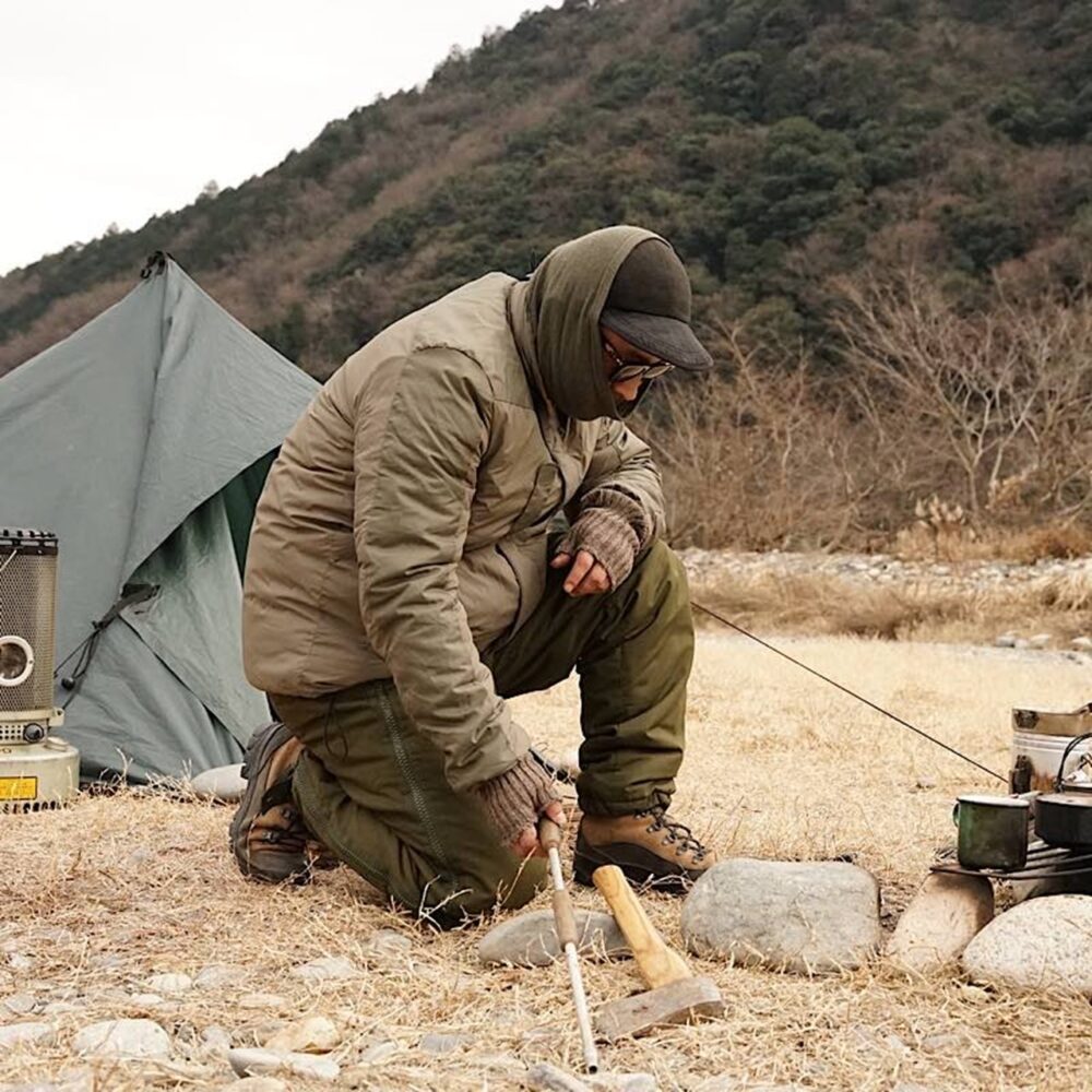 「区画されたキャンプ場で、手のキャンプをすると強烈に浮くんですよ(苦笑)。だから基本的には野営。軍だと敵に見つからないように山間部でキャンプするので、そのルーツを考えるとサバイバル的な要素もある自然の中でやる方が理に適っているのだと思います。基本的にミリタリーのギアは耐久性が高く、修理がしやすいシンプルな構造。だから近年のキャンプグッズのような快適性はありません。でも自分の中でキャンプは不便を楽しむものだから、ちょうどいいんですよね。だから大勢でやるより、ソロキャンプもしくは少人数でやるシーンにしっくりと思いますよ」