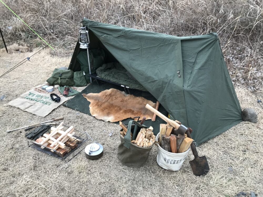 「軍では野営することが前提なので、世界各国の軍隊にキャンプギアが存在します。アメリカとスイスでは気候や環境が異なるので、ウエア同様にキャンプツールに対する作り込みも違ってきて、追求してみるとおもしろいんです。もともとはアウトドアメーカーのテントを使って、普通のキャンプを楽しんでいたのですが、ポーランドとフランスのテントを仕入れできるタイミングがあり、それを使ってキャンプをしたら、ものすごく楽しかったんですよ」