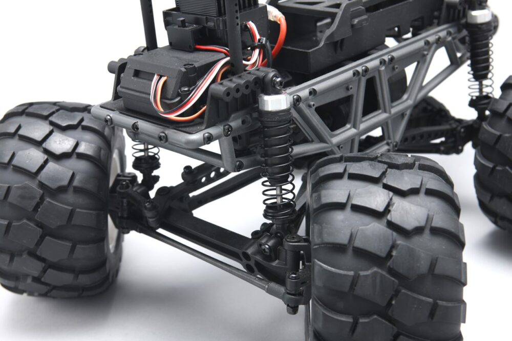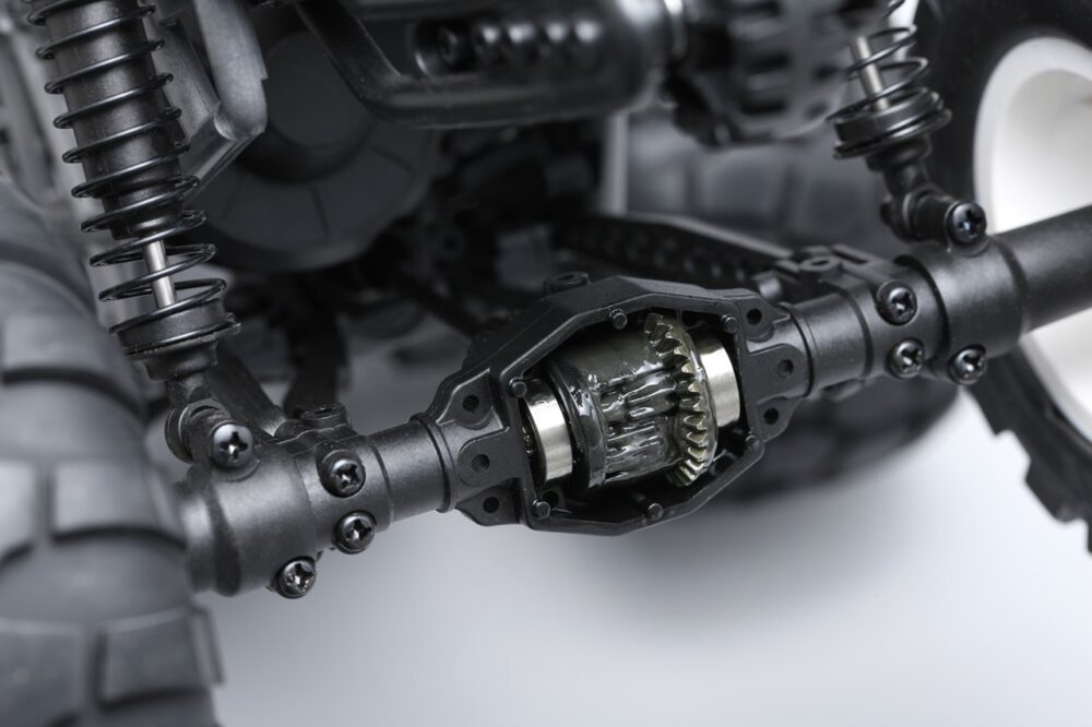 メカニズムは実車さながらの機構を搭載。衝撃吸収力に優れたビッグボアショックや4リンクサスペンション、そして遊星ギヤを採用。2WDなのでガツンとアクセルを入れればウィリー走行も可能だ。またホビーRCなので、パーツを破損した場合はスペアパーツを購入して自分で修理もできる。カスタムをしたり、サーボやモーターをパワーアップしてチューニングを楽しむのも一興だ。