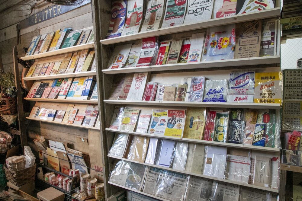 紙モノだけでなく、メイソンジャーや農機具など変わったアンティーク&ヴィンテージアイテムを扱う名古屋市中川区の「グリッター」でもオープン当初から約15年ほど扱っている定番人気のジャンル。キャッチーなロゴやフォントなどデザイン面や使用している素材は、古いデザインが好きな人にはたまらないはず。飾るだけでなく、アイデア次第で様々な使い方が楽しめるのも特徴のひとつだろう。