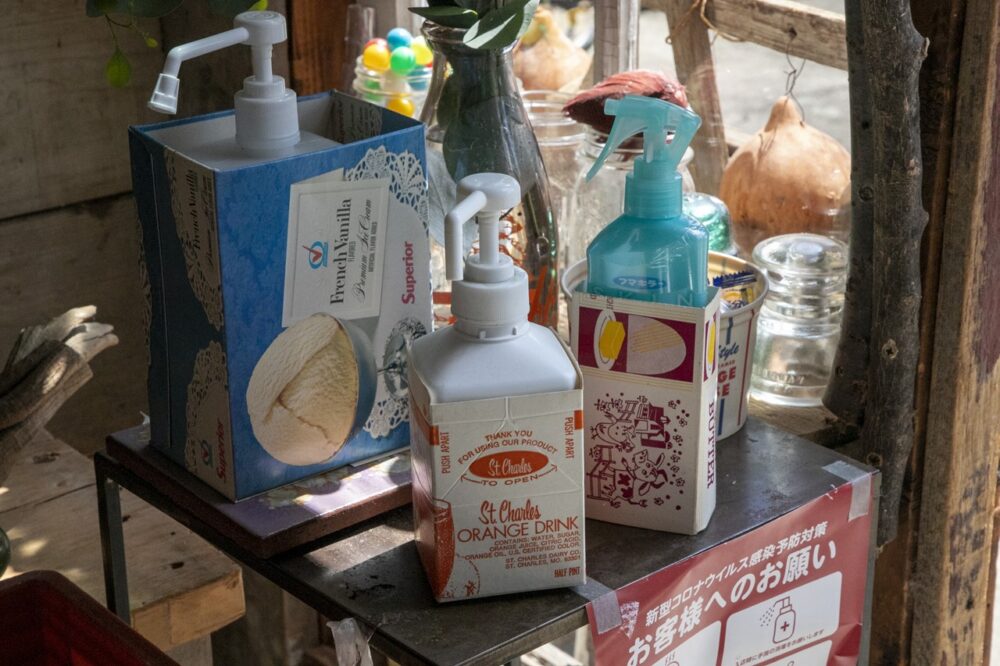 インテリアとして単品で飾るだけではなく、好みのデザインの品をコラージュして額装すればオリジナルのアート作品になるし、箱モノの品は今時なら消毒用スプレーやハンドソープを入れる容器に。また、アイスクリームバッグのように分厚い紙袋はひと手間加えてバッグにカスタムしたりとアイデア次第で様々に活用できる。