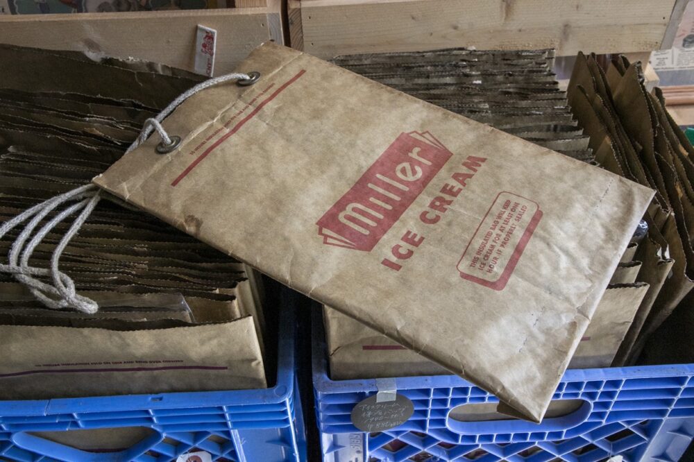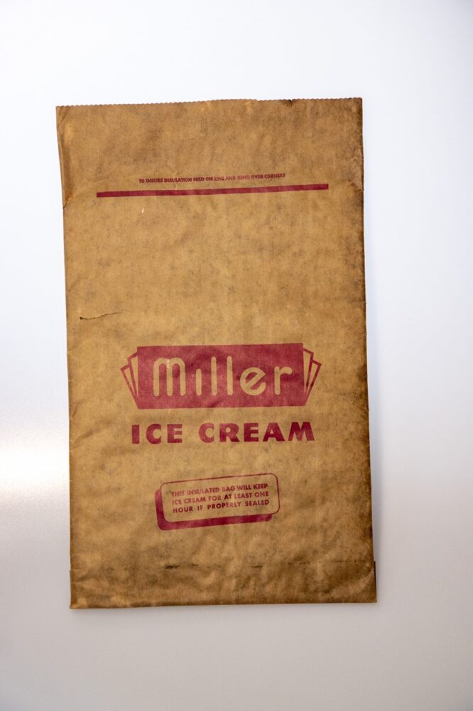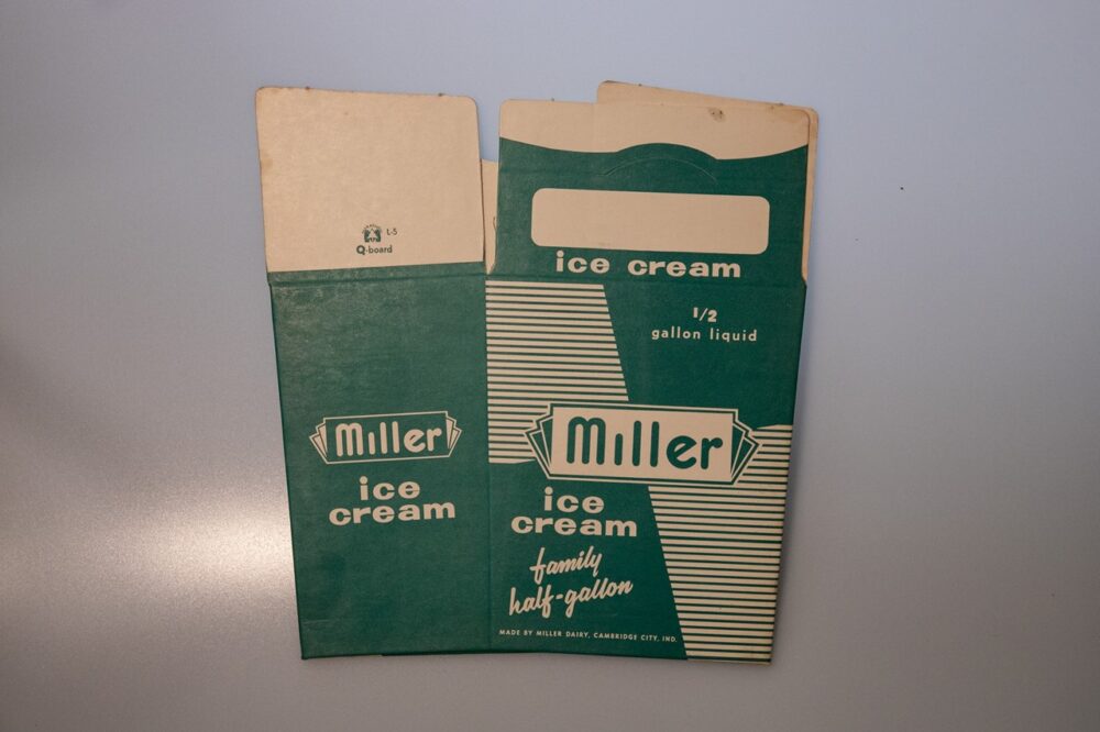 ミラー社の1/2ガロンサイズのアイスクリームパッケージ。組み立てるとボックスになる。880円