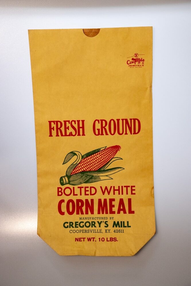 ケンタッキーにあったグレゴリーズミルという会社のコーンミールバッグ。色使いもいい。880円