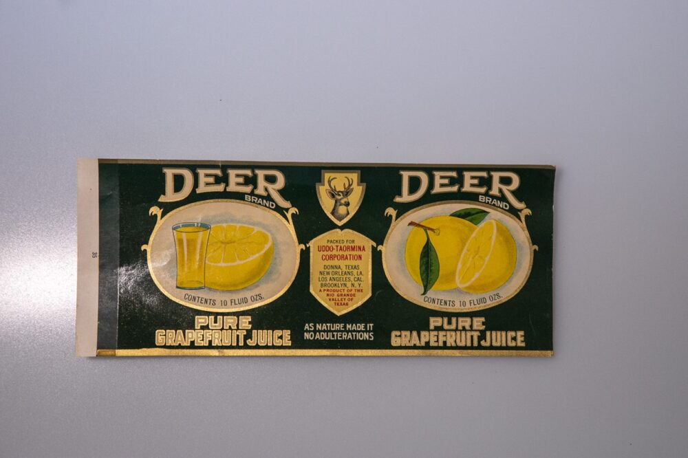 ディア社のグレープフルーツジュース缶のラベル。こちらは年代は不詳だが古そう。880円