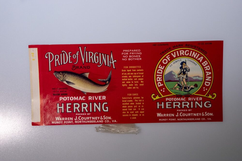 プライドオブバージニアブランドのエールワイフというニシン科の魚の缶詰ラベル。880円
