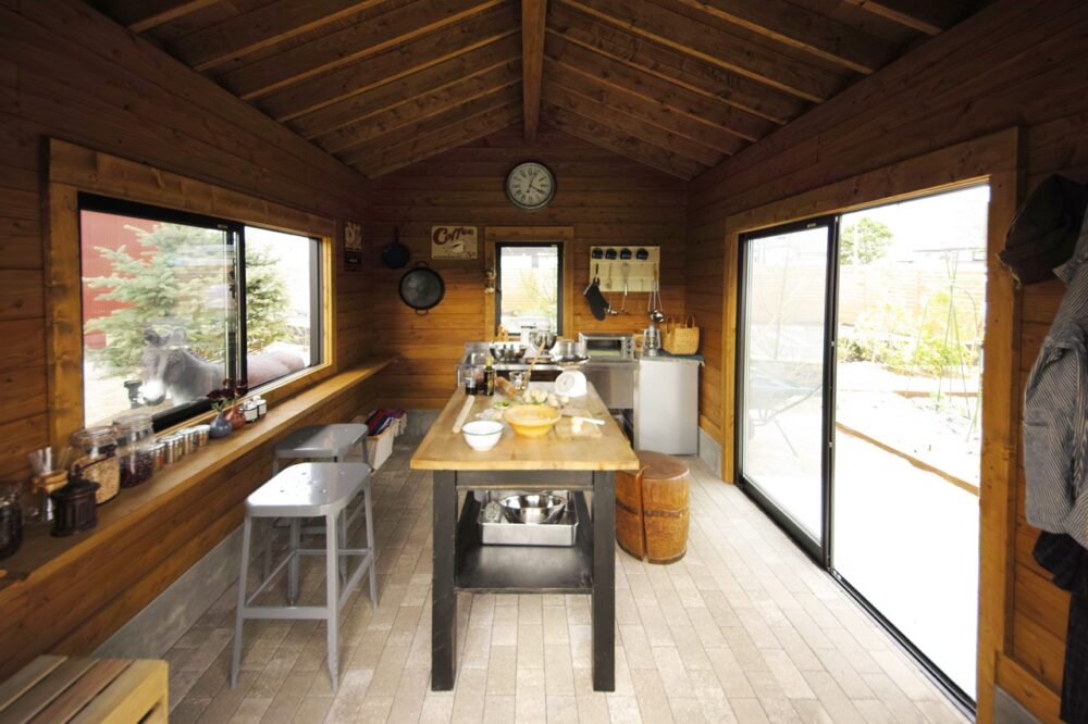 DIYルームやワークスペースとしてはもちろん、農園の片隅に置いて休憩場所にしたり、店舗としても使える小屋。内装は約6畳ほどの広さ。全体のカタチや間取りなどが異なるので、目的によって選べるのが嬉しい。ペイントやアレンジ、カスタムなど気軽にできるのも無垢のログ材。遊び心の満載の小屋を作ってみては。W3500×D2800㎝、148万5000円(BESS TEL03-3462-7000 https://imago.bess.jp/imago-ra/)