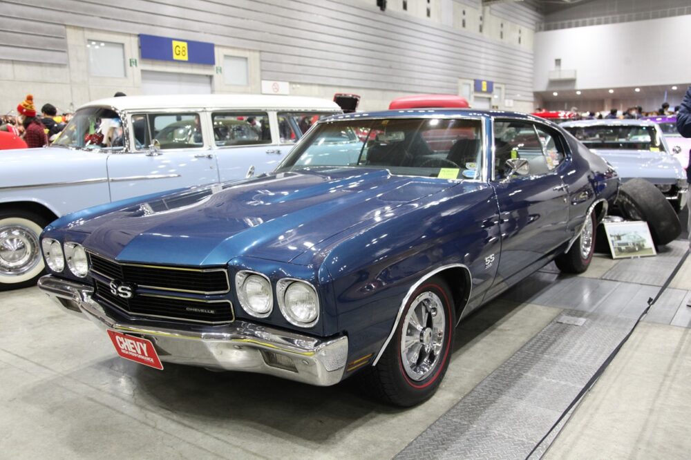 ストリートではオリジナルスタイルだけど、リアタイヤをスリックタイヤに履き替えてドラッグレースでも走ってしまうという1970年式シボレー・シェベルSS。