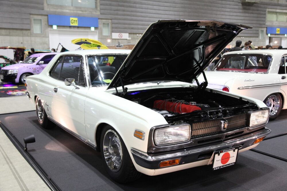 1969年式トヨタ・クラウン。当時の国産車って2ドアモデルもラインナップしていた。今や探すとなると現存数は少ない旧車のひとつだ。