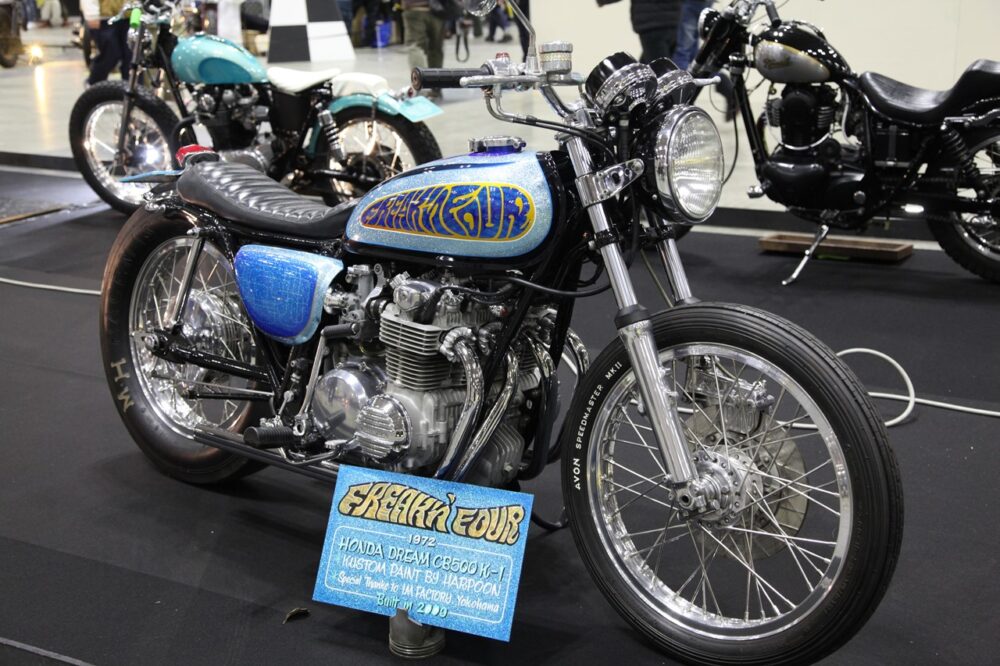 1972年式ホンダCB500なんて若い頃にヤンチャしていた大人たち憧れのモデル。それをあえてアメリカンなドラッグレーサーにカスタム。
