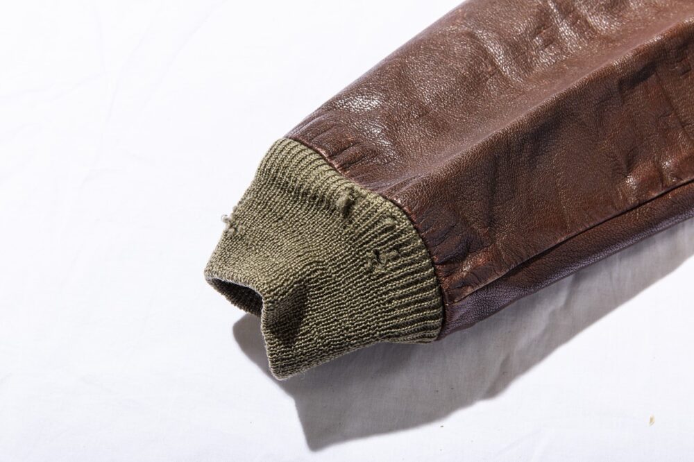 マクレガーブランドでお馴染みのデビッドドニガー社が生産したA-2は、かなり生産数が少なく、レアなタイプA-2のひとつ。「おそらくゴートスキンのみの生産で、その数は5000枚と言われています。リブが替わっていますが、当時交換されたものだと思います」