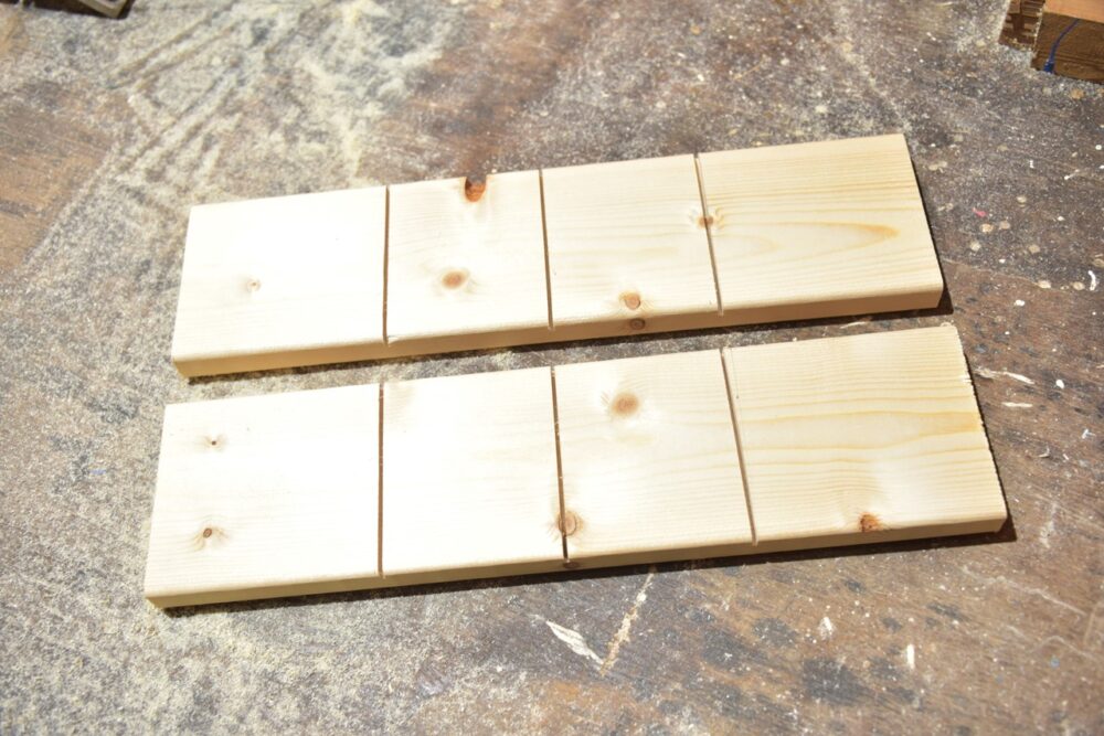 設計図通りの間隔で、溝をつけたのがこの状態。少しでもずれてしまうと板が入らなくなるので要注意だ。