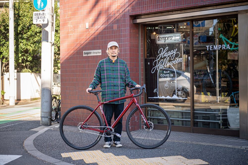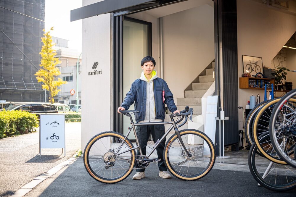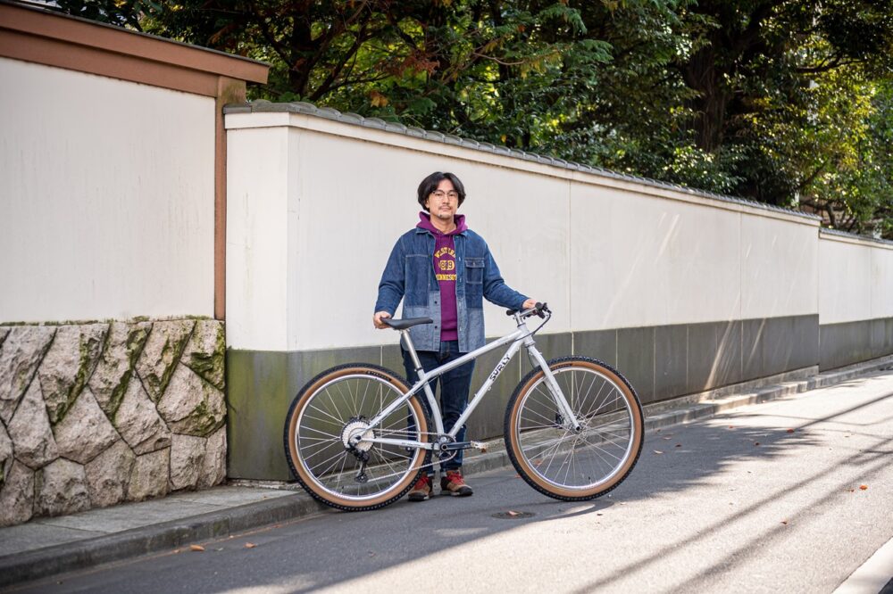 自身の名前から店名に配したMATTHEW CYCLEの摩周さん。思い出せる限りでMTB24台、BMX12台、ロード6台、グラベル4台、ツーリングを4台を乗り継ぎ、ジャンルにこだわらず毎日自転車で遊んでいたとのこと。