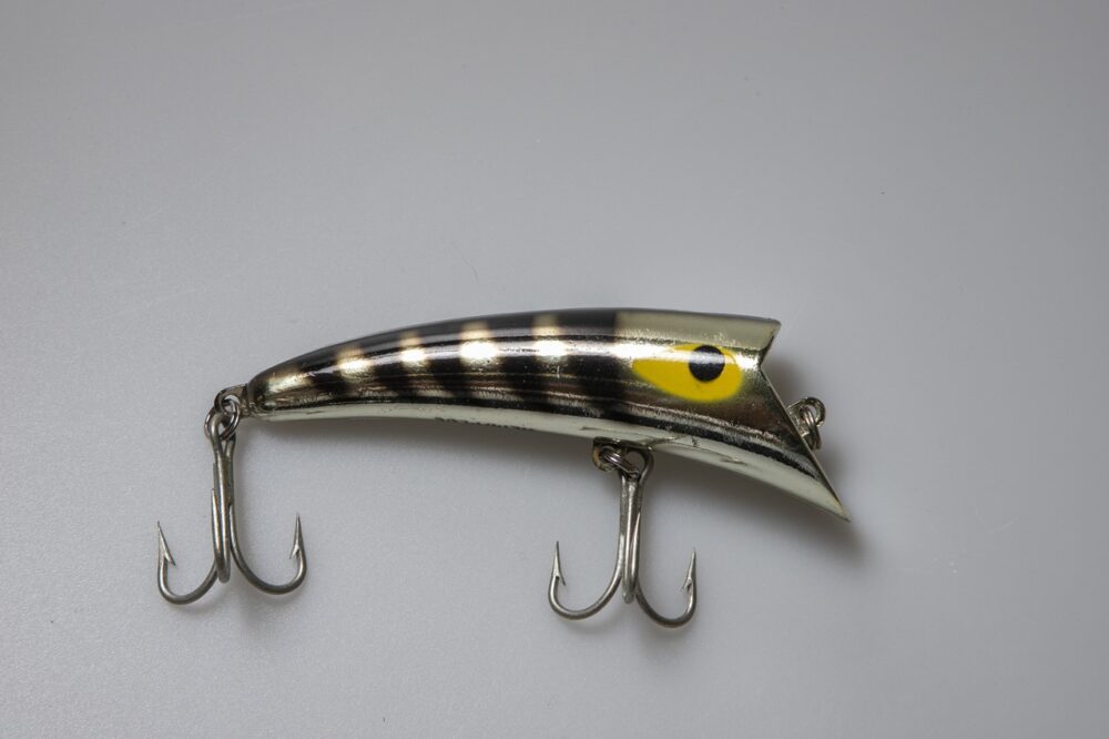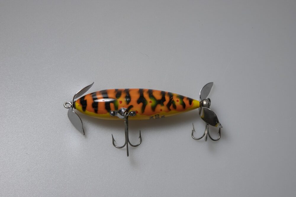 ヘドンの代表作のひとつウンデッドミノーがデビューしたのが1928年。それをプラスチックで再現したのがウンデッドスプーク。こちらは1980年代初頭の後期モデルのレアカラー。4万5000円