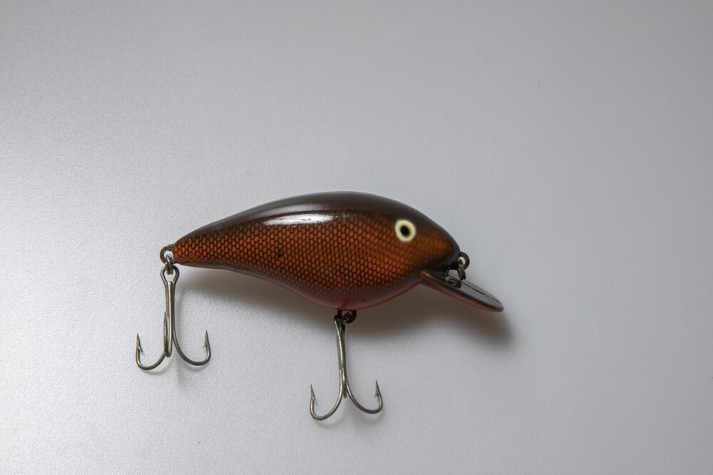 丸い小魚のようなフォルムのクランクベイトのビッグヘッド。1970年〜’80年代製。レアカラー。3万5000円