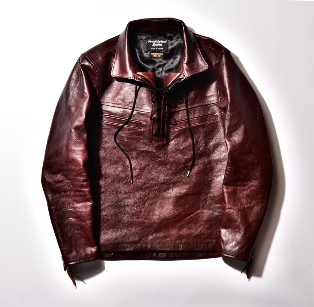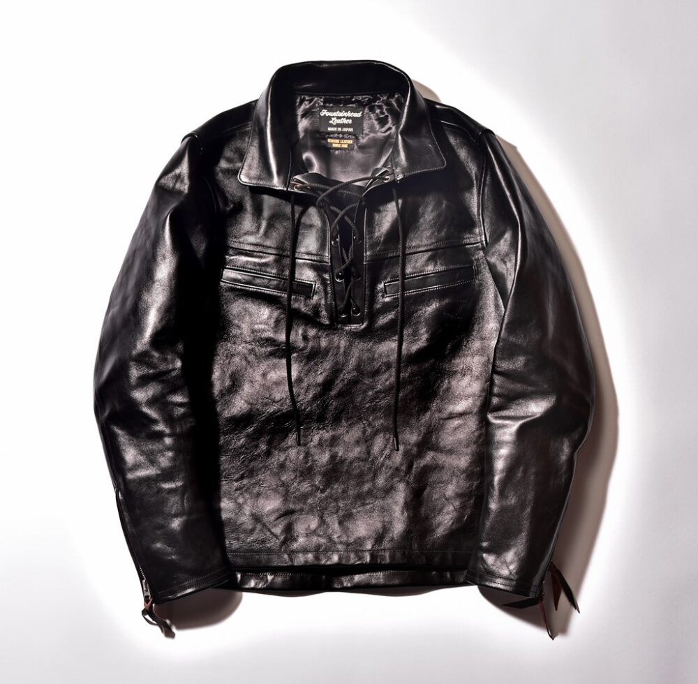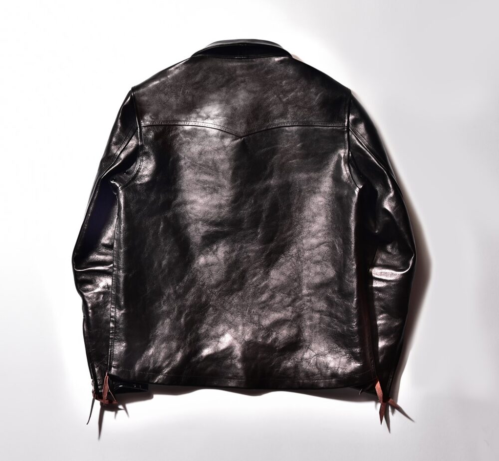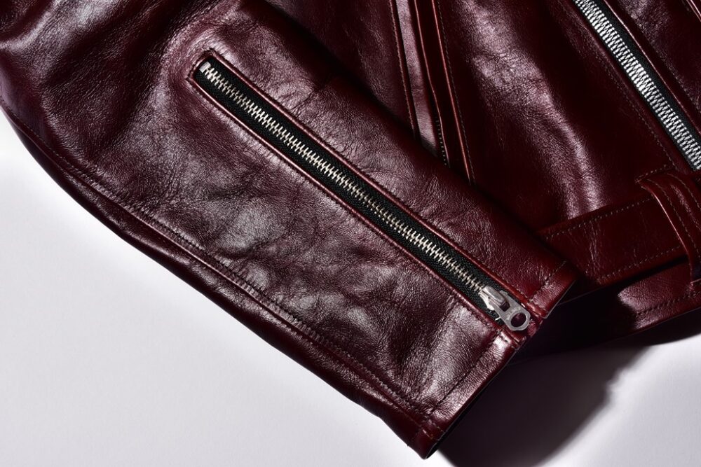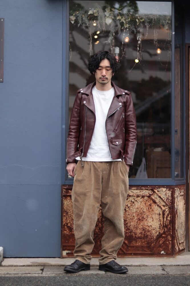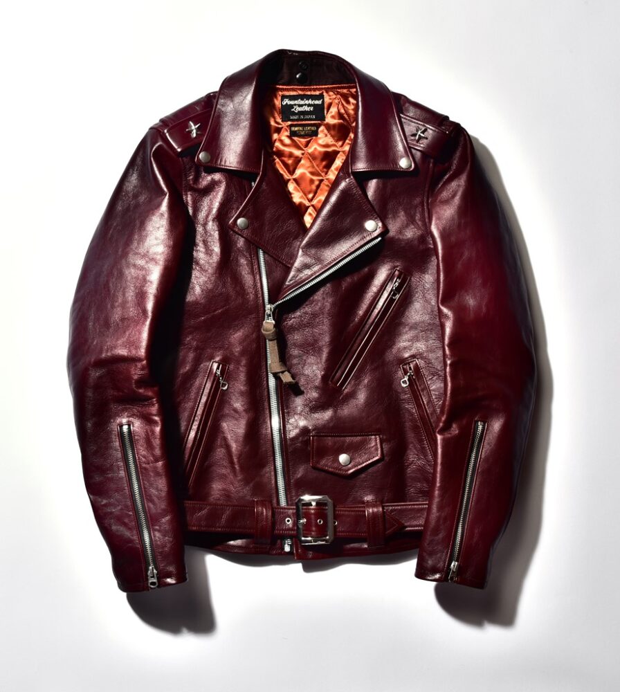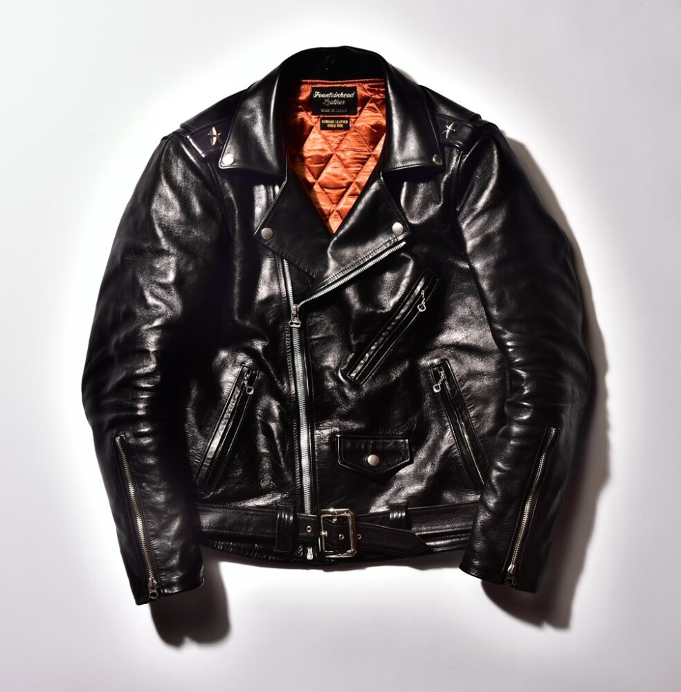 映画『乱暴者』で有名になったデュラブル社のダブルライダースをモチーフに、着丈や身幅を見直してモダナイズさせた渾身の一着、「ゼータ」。素材には、世界に名だたる名タンナー「新喜皮革」の1.5㎜厚の渋鞣しの馬革を採用。顔料仕上げを施してあるため、独特の艶感をたたえている。着込むほどに表面の顔料がひび割れ、ダイナミックなエイジングが楽しめる。腕周りも若干細く、スタイリッシュに着こなすことができる。現在、マスファルトで予約受付中だ。この機会に是非。19万8000円
