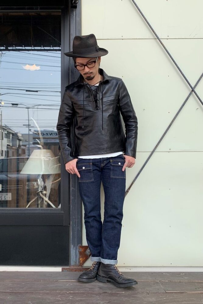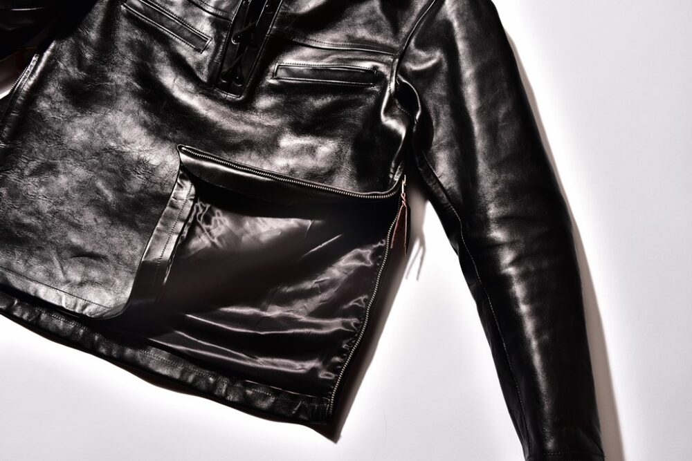 1950〜’60年代にモーターサイクル系のブランドでよく見られたプルオーバータイプをスタイリッシュにモダナイズ。両胸にポケットが付き、ウエスタンヨーク仕様のファッション性の高い1着に仕上がっている。着こなし難易度は若干高いが、フロントジッパーがないため遮風性が高く、バイカーにはうってつけのモデルと言える。真冬にはインナーとして着用し、この上からコートなどを羽織れば、コーデの幅も広がるはずだ。16万5000円