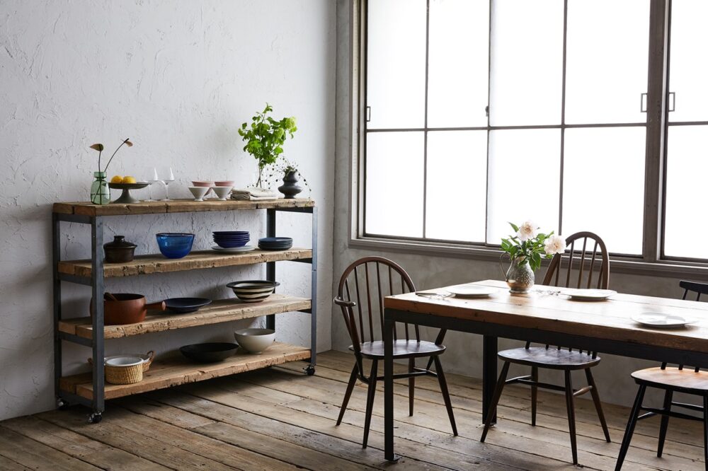 DIYなどで一般に流通する板の多くが通常3・2㎝だが、造船所で足場板として使われる板は5㎝もの厚みがある。ダイニングテーブルやシェルフなど大型家具には適しているが、小物は作れない。それでもこの重厚感と足場板だったという歴史が刻まれた家具は、徐々に認知され、スタート当時に目標にしていた売り上げをはるかに上回る結果になった。