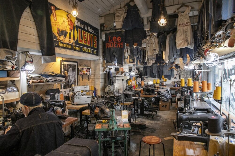 コナーズソーイングファクトリーの画期的な点は、代表の小中さんをはじめ3名のニードルワーカー(縫製師)が全工程をひとりで作り上げること。しかも、使用するミシンは全てヴィンテージ。