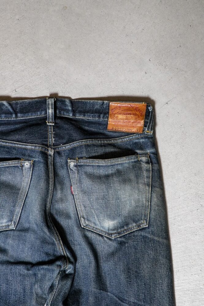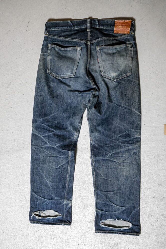 シンチバックを搭載した第二次大戦以前の1941年に作られたモデルを生地や縫製の仕方まで再現した1本。1年ほぼ毎日着用。青味の強い色落ち具合が奥行きのある表情を生み出している。