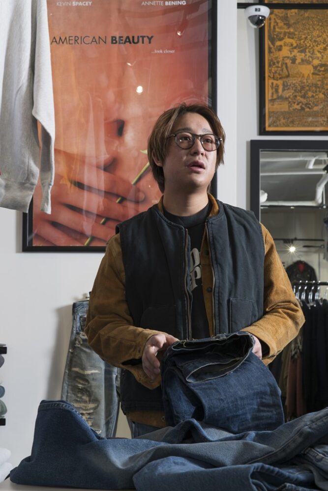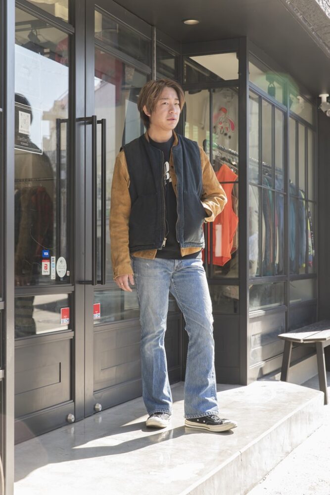 昨年にオープンしたベルベルジン遊歩道のディレクター蒔田さん。様々なトレンドに精通し、ブーツカットデニムも提案。特に’80s〜’90sの517を様々な角度で解明。