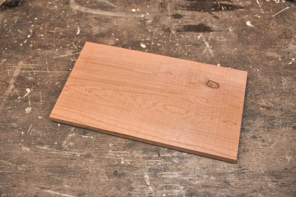 厚さ約2㎝ほどの板を1枚用意。内側を切削するので、少し厚めでもOK。サイズは作りたい大きさよりも大きめにカット。
