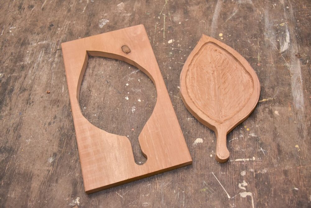 ③ 受け皿部分には葉っぱの脈を掘ってリアリティを出す。