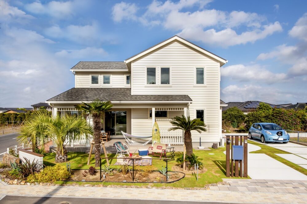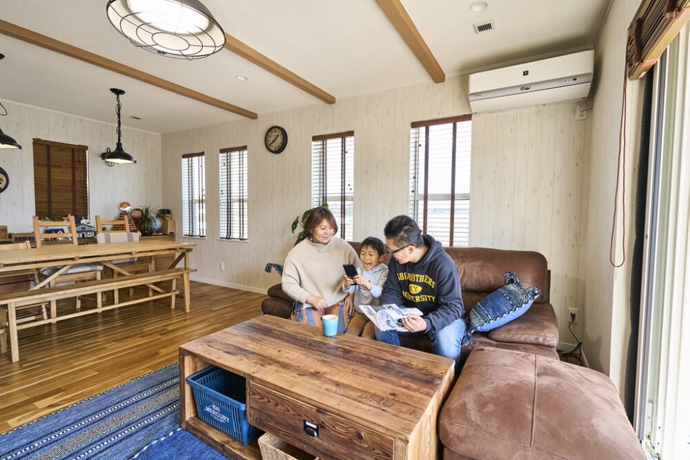 「外観はシンメトリーで、オールドアメリカンな色。窓サッシも大きく開くタイプにして、カバードポーチは絶対に外せませんでした。住宅メーカーを探しているとき、自分の理想の家に近いものを手がけているGLホームが近隣にあったんです。自分が思い描く家をラフ画にして持ち込みました(笑)。最後まで僕たちの意見を聞いてくれ、この家が完成したんです」