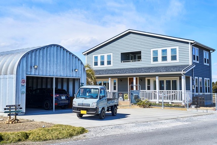千葉県東部の内陸部。周辺には田畑が広がった、とてものどかな場所に突如アメリカンな雰囲気を醸し出している家がある。「すべては昔雑誌で見たアメリカ車から始まったんです」と話すのは、この家のオーナーである中田さん。映画やドラマに出てくるアメリカの家に憧れ、クルマいじりが大好きな彼が、どうしても建てたかったのがこの家だ。