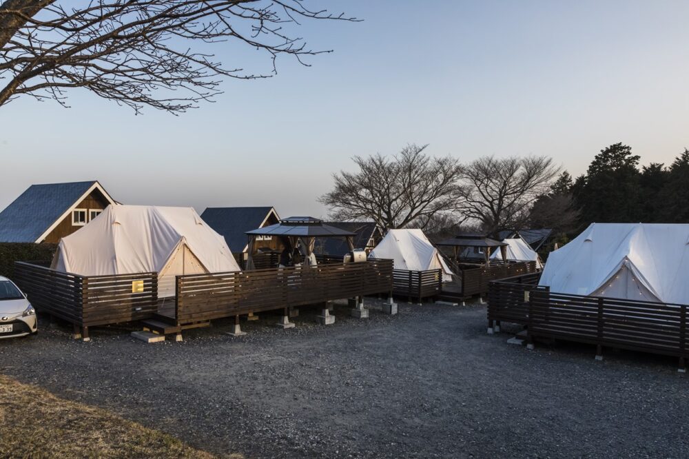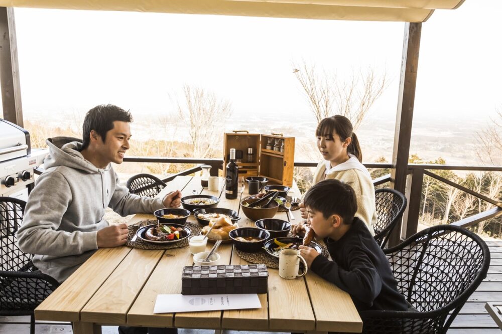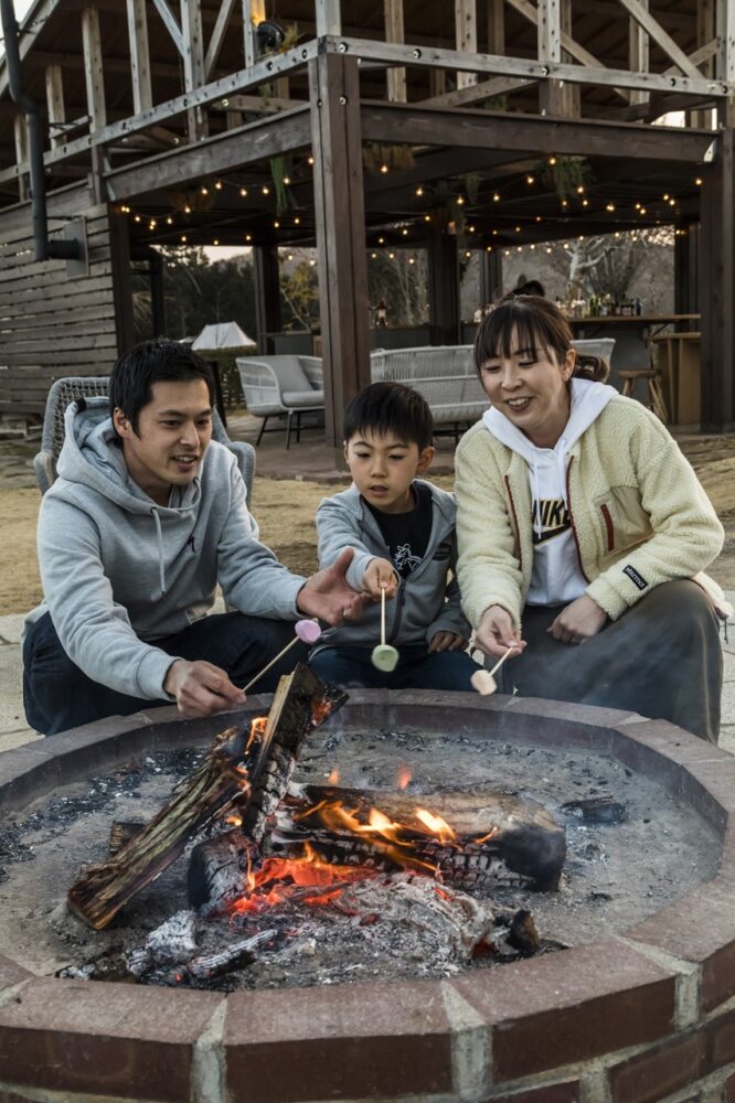 そんなグランドチェロキーLで清水さんファミリーが訪れたのは、都内から1時間半弱とアクセスも良好な茨城県笠間市にあるE T OWA笠間というアウトドアリゾート。至れり尽くせりのグランピング施設や、ウッドデッキからの眺望が最高のログキャビン、さらに大きな焚き火を楽しめるファイヤーピットなどを有するワンランク上のアウトドア施設だ。