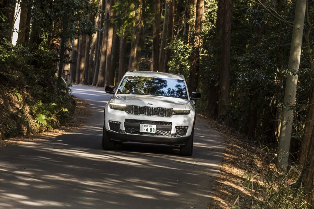 全長5.2m、ホイールベースも3mオーバーという大柄なグランドチェロキーLだが、スクエアなボディは左右ボンネットの見切りもよく、思いの外小回りが効くと清水さん。