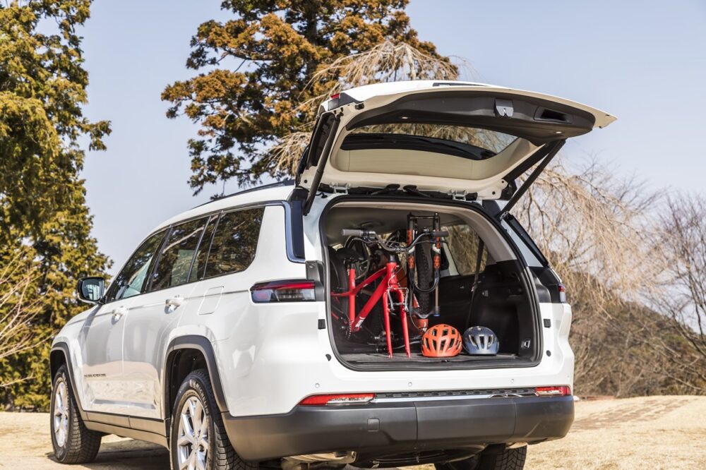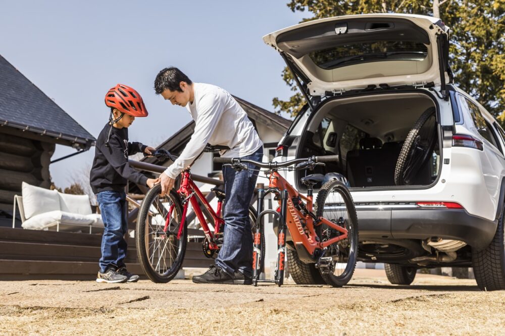 ちなみに今回はサードシートを格納しリアシートを片方倒すことで、大小二台の自転車をルーフ上ではなく車内に搭載。さらに家族3人分の荷物をラゲッジスペースに搭載し、三人が快適に移動ができた。グランドチェロキーLはアウトドアアクティビティとの親和性も非常に高いことがよくわかる結果となった。